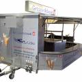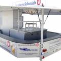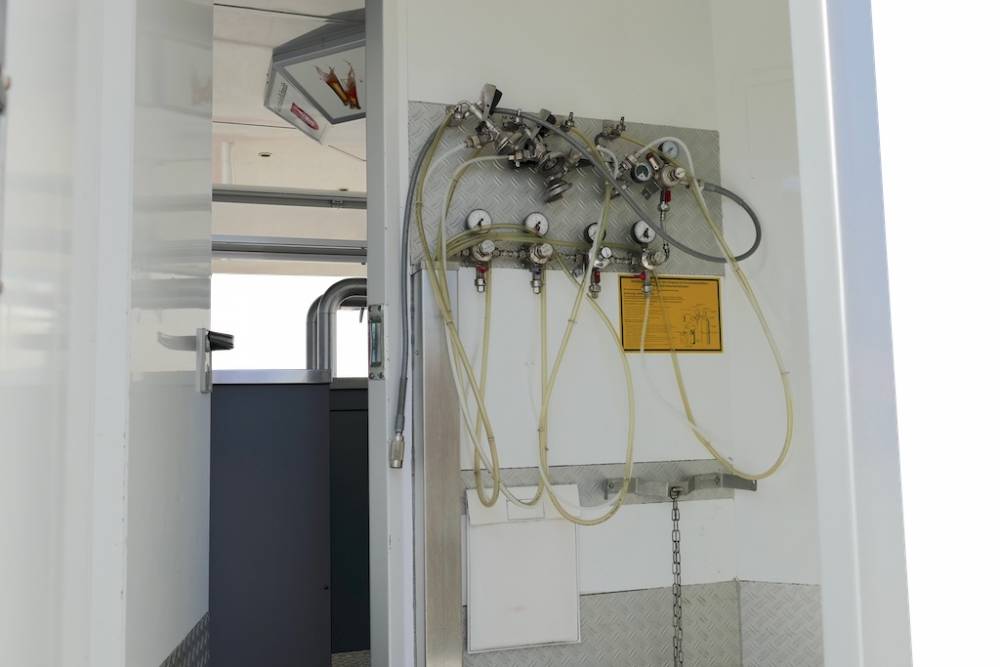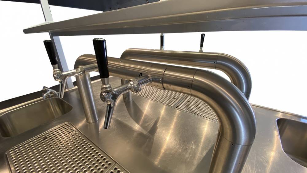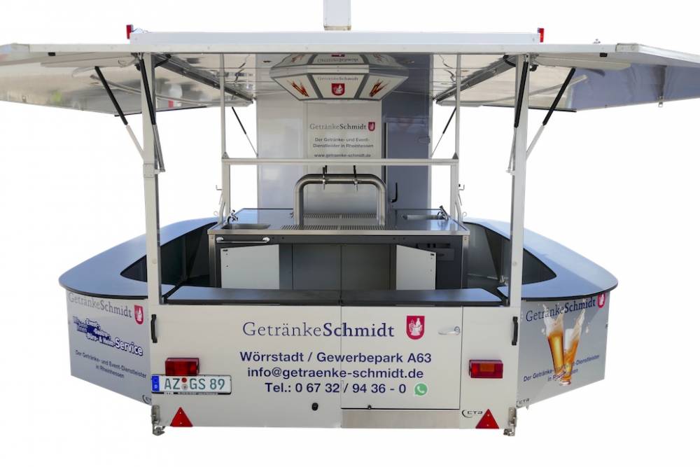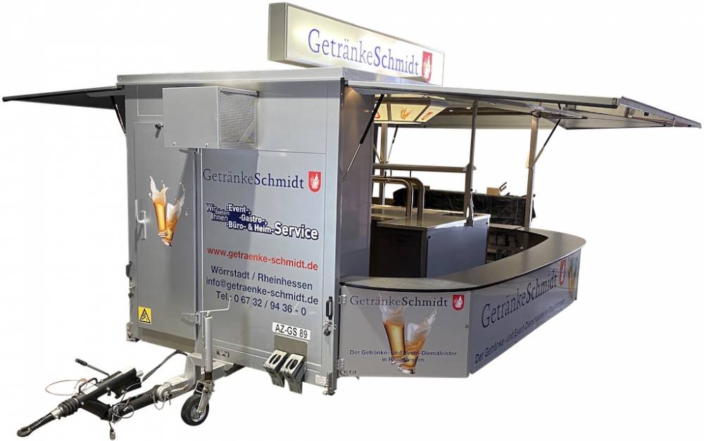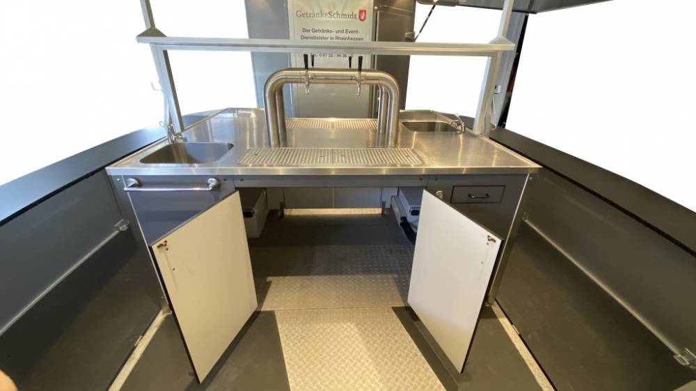Das Achteck mit 3 Seitenöffnungen im schönen silber lädt zum Verweilen ein. Mit integrierter Kühlzelle von innen und außen begehbar, ist dieser Ausschankwagen auch für große Veranstaltungen super geeignet. So kann der Nachschub reingestellt werden, ohne den laufenden Betrieb zu stören! Mit den vier in der Mitte angeordneten Zapfhähnen, können Sie schnell und effektiv auch verschiedene Fass Biere zapfen.