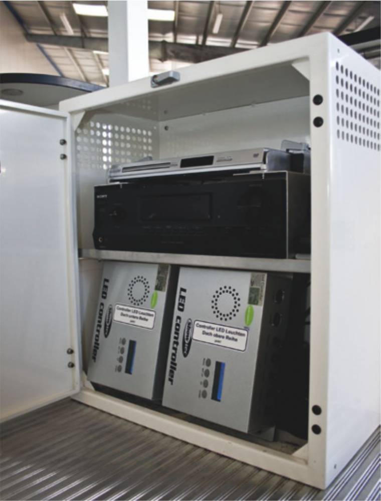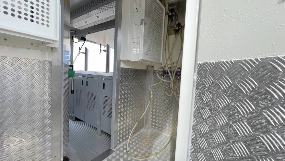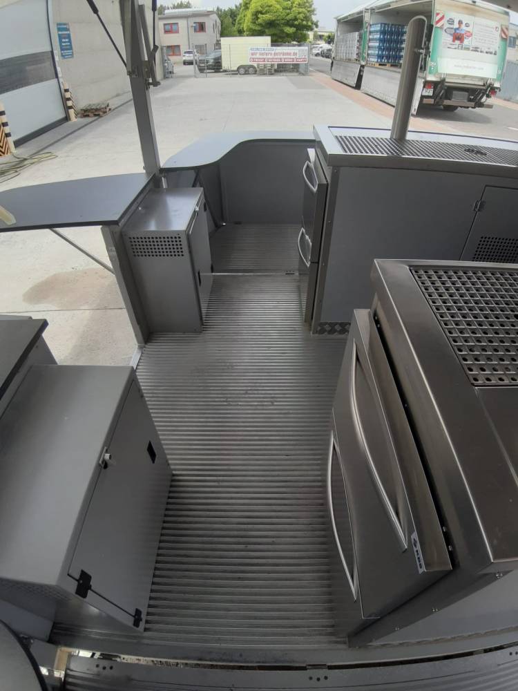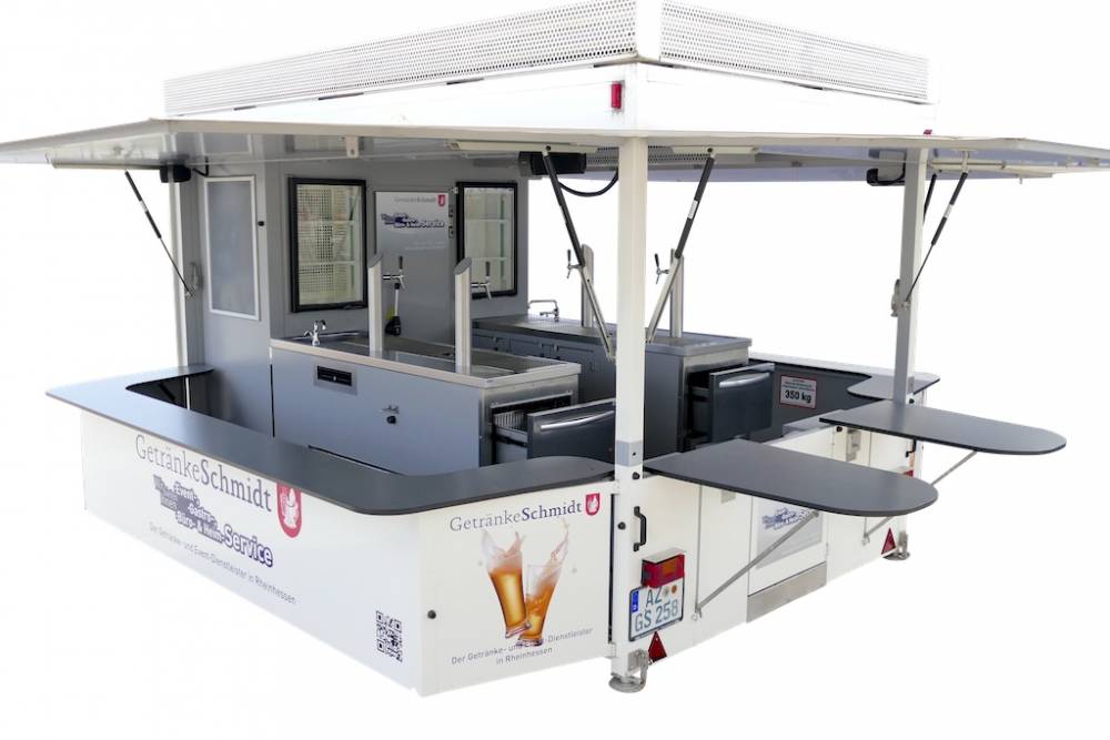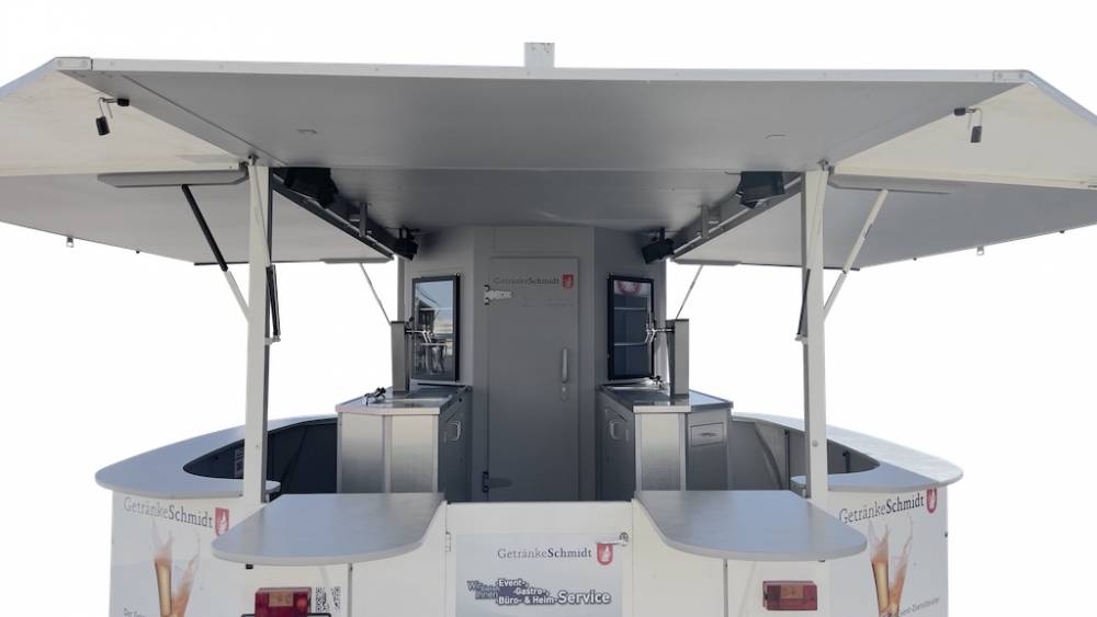 Mit dem LED-Farbwechselsystem im Ausschankwagen und dazu dem Doppel LED-Farbwechselsystem auf dem Dach ist dieser Ausschankwagen der Star auf jeder Feier. Die Zapfstationen im Mittelgang sorgen für einen reibungslosen Ablauf und der Nachschub durch das von innen und außen begehbare Kühlhaus kann ohne Störung der Gäste gewährleistet werden.